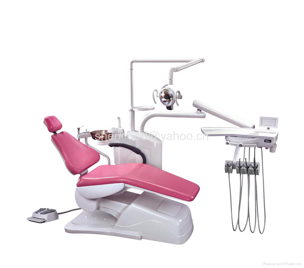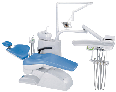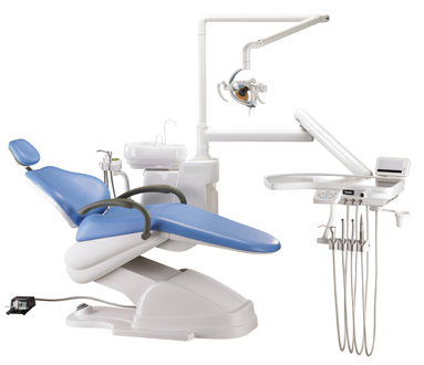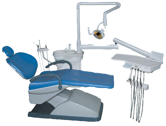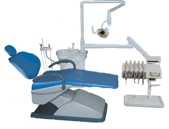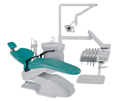 Стандартна конфигурация -- с 4 гнезда за високоскоростни въздушни турбини - 2 броя -- с 4 гнезда за нискоскоростни въздушни турбини - 1 брой -- трипътна рукохватка въздух-вода -- автоматична система с филтри за пречистване на водата -- автоматична система за подгряване на водата -- плювалник с автоматично почистване -- слюносмукател -- лампа студена светлина -- широка табла и въртяща сестринска част -- негативоскоп -- електронен панел за контрол на функциите на стола -- 3 броя шлаухи за инстурменти -- електронно задвижване на стола с педал -- безшевна тапицерия -- стол за стоматолога -- 3 позиции за запаметяване на положението на стола Спецификация -- Подържащо напрежение..............220V, 50Hz -- Въздушно налягане........................>0.55Mpa -- Налягане на водата.......................0.2MPA~0.4Mpa
