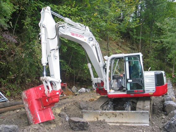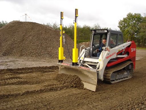 | | Верижен товарач Takeuchi TL150 с гребло с лазерно управление | Верижен товарач Takeuchi TL150 с гребло с лазерно управление. Управлява се по 6 параметъра, положението на греблото се коригира 2 пъти за секунда и заравняването се извършва с точност до 1 см. Отлична алтернатива на автогрейдера, който е с много по-големи габарити и освен това положението на греблото му зависи от положението на машината, която следва неравностите на терена. |